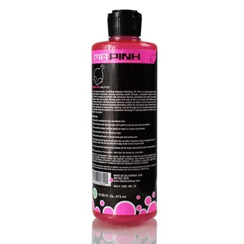 Mr. Pink is the perfect way to remove dirt, grime, and debris while maintaining the quality of your paintwork. The advanced formula of Mr. Pink is tough on dirt, yet gentle on wax and sealant. Mr. Pink is super concentrated for a 1:4000 dilution ratio. This means you only have to add 1 ounce of Mr. Pink to a 2 gallon bucket to achieve a perfectly clean surface. Mr. Pink will change the way you wash your car forever. It's the perfect detailing shampoo for any situation. The technology incorporated into Mr. Pink is truly high-tech. The high foaming formula creates an extra slick wash solution that allows your wash mitt to easily slide over the surface. 95% of swirl marks, scratches and marring are caused from improper washing. Mr. Pink's unique formula releases a constant discharge of foaming bubbles that surround and capture dirt particles allowing them to be removed safely and easily without scratching the surface. The pH neutral formula gives Mr. Pink the ability to clean any surface safely and easily. Mr. Pink gives any detailer ultimate versatility when detailing any car, truck, motorcycle, boat or RV.