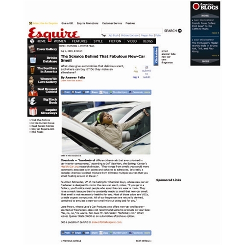"Hundreds of different chemicals are contained in car-interior components," according to Jeff Gearhart, the Ecology Center's HeathCar.org research director. "They range from smells you would more commonly associate with paints and solvents to adhesives. It's really a complex chemical cocktail mixture from all these multiple sources that you smell floating around in the air."